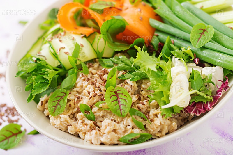 Диетическое меню. Овсяная каша и свежие овощи