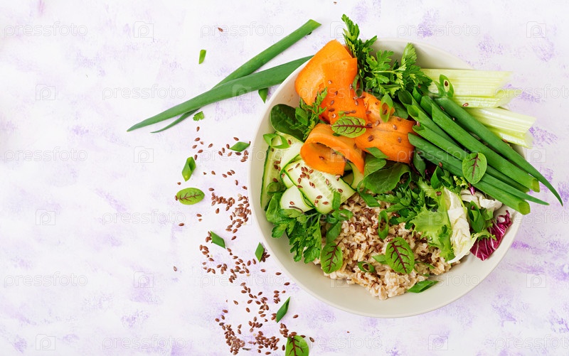 Диетическое меню. Овсяная каша и свежие овощи