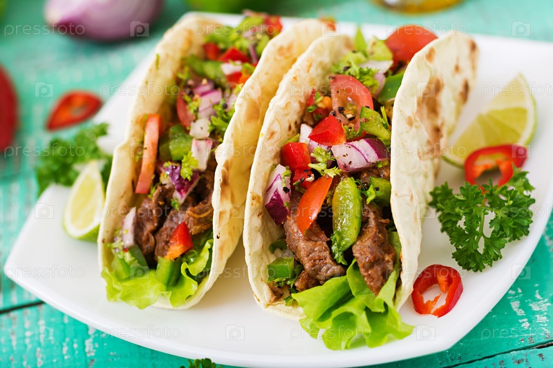 Мексиканское тако с говядиной в томатном соусе и сальсой
