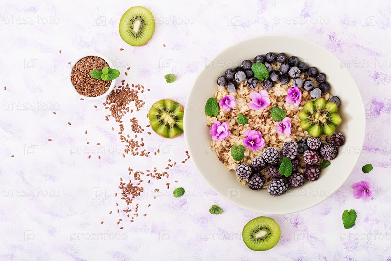 Вкусная и полезная овсяная каша с фруктами, ягодами и льняными семенами