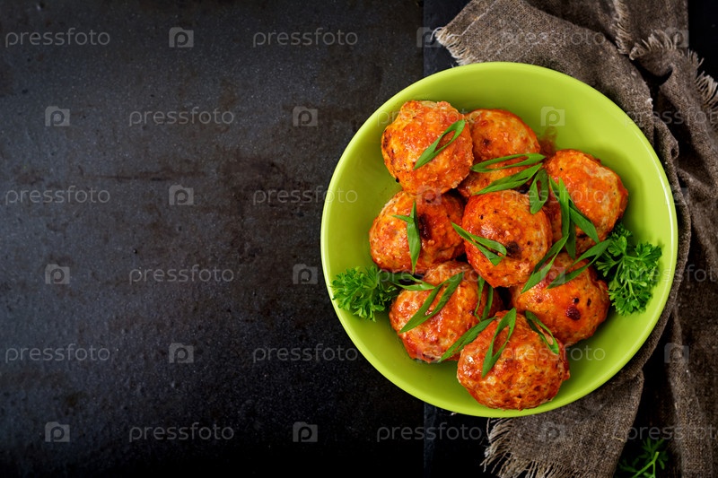 Запеченные фрикадельки куриного филе в томатном соусе