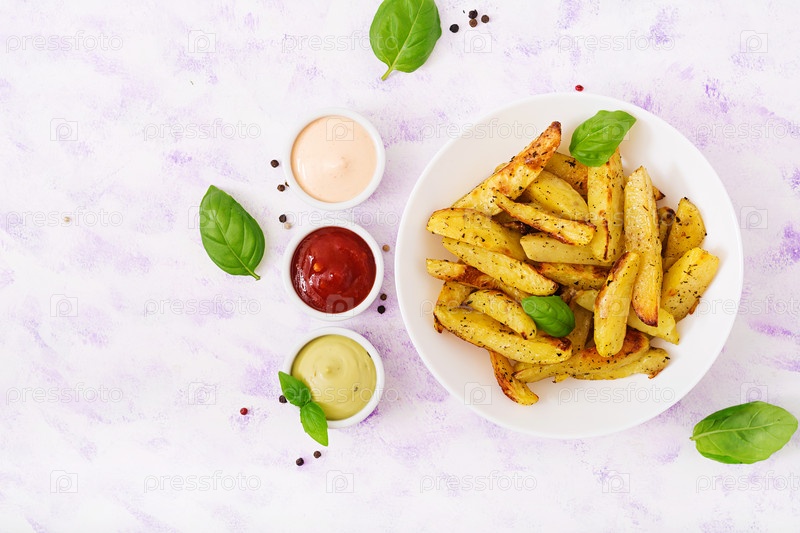 Румяные запеченные картофельные дольки с зеленью