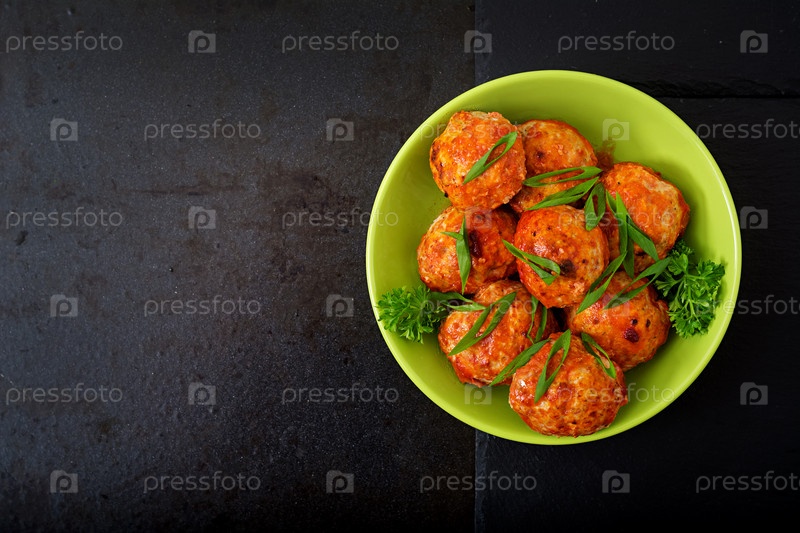 Запеченные фрикадельки куриного филе в томатном соусе
