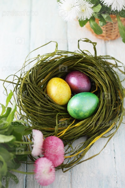 Гнездо с крашенными яйцами