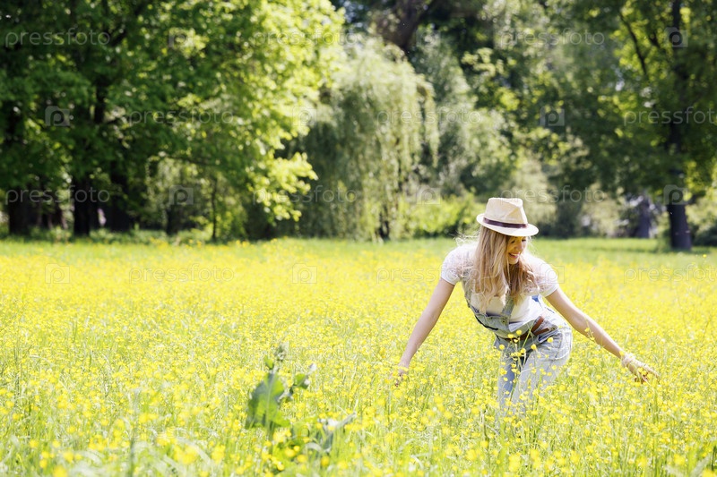 Женщина трогает цветы