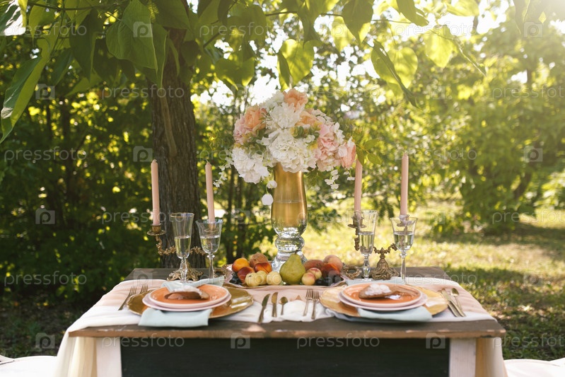 Накрытый столик в парке