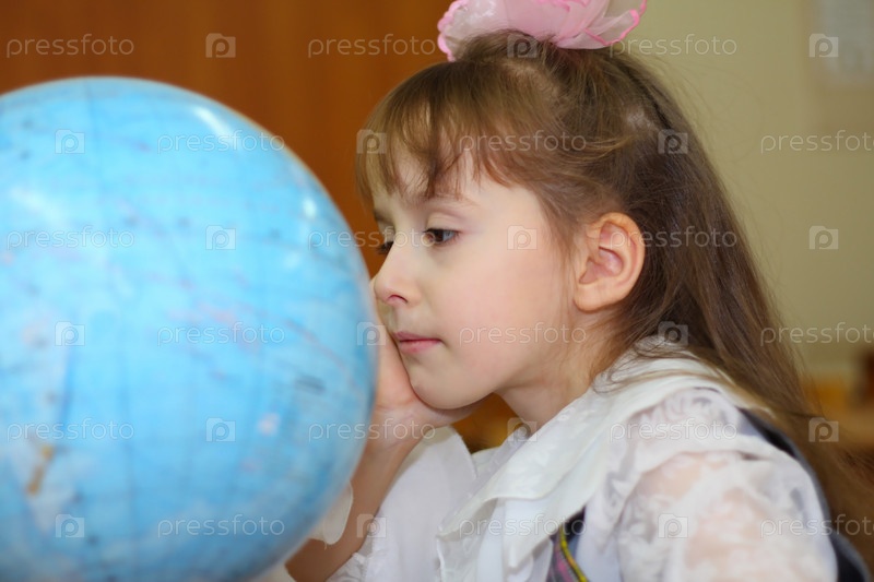 Ученица с глобусом Фокус на лице.