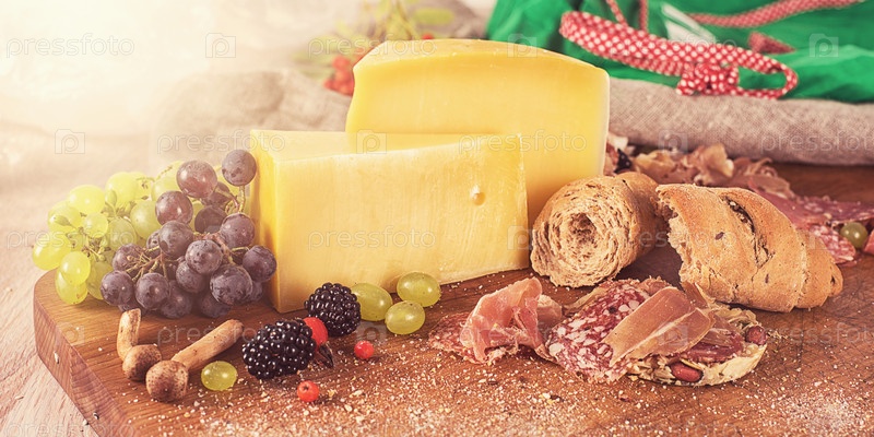 Сыр, колбаса и ягоды