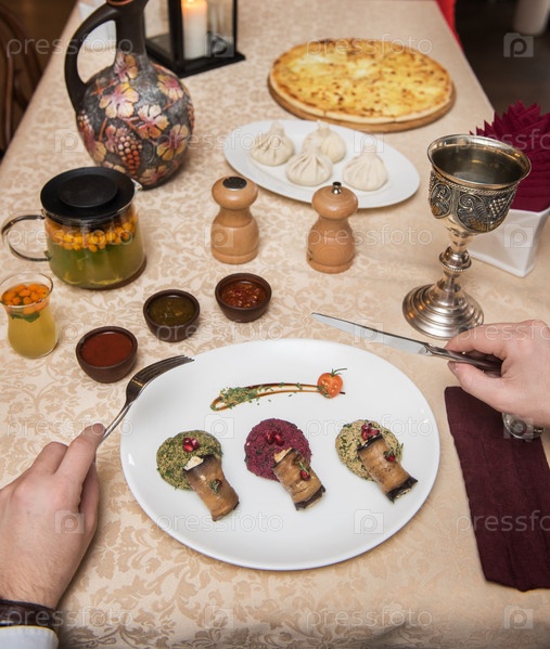 Человек ест в грузинском ресторане