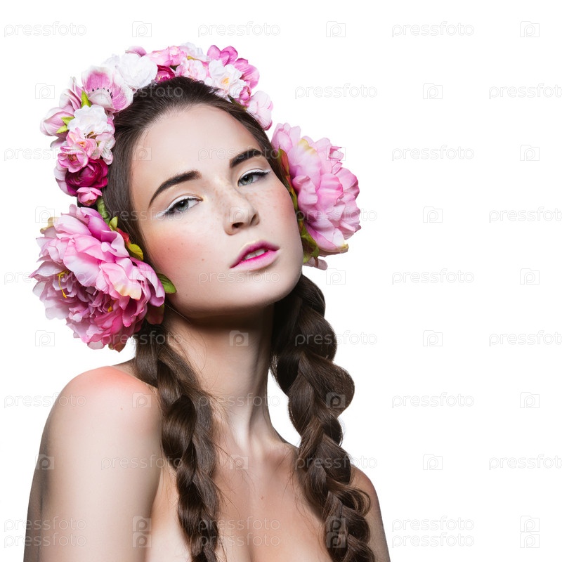 Красивая девушка с цветочными наушниками