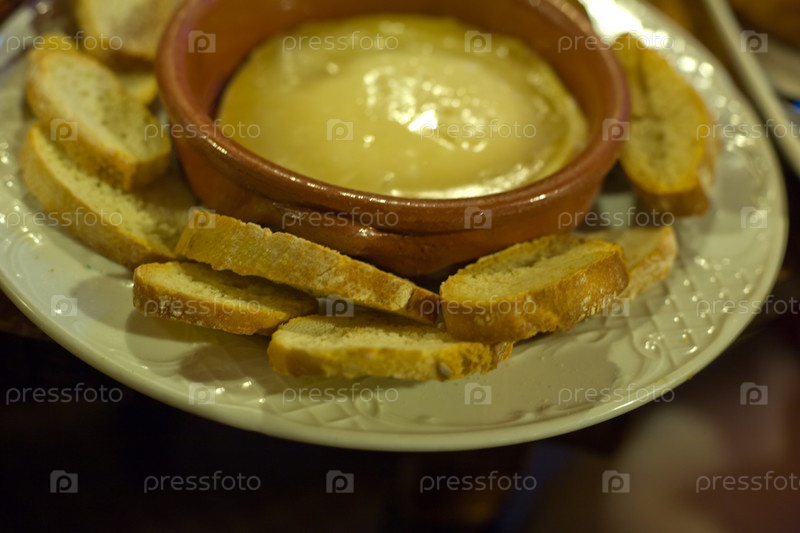 Теплый сыр с ломтиками хлеба