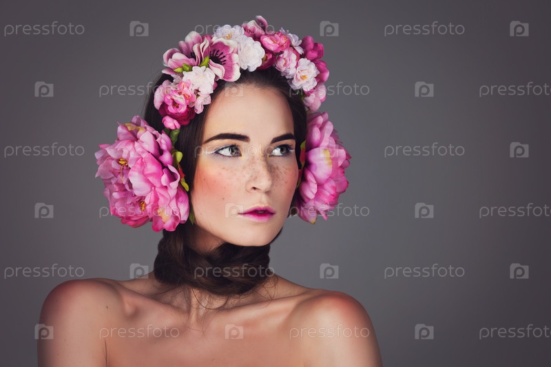 Красивая девушка с цветочными наушниками