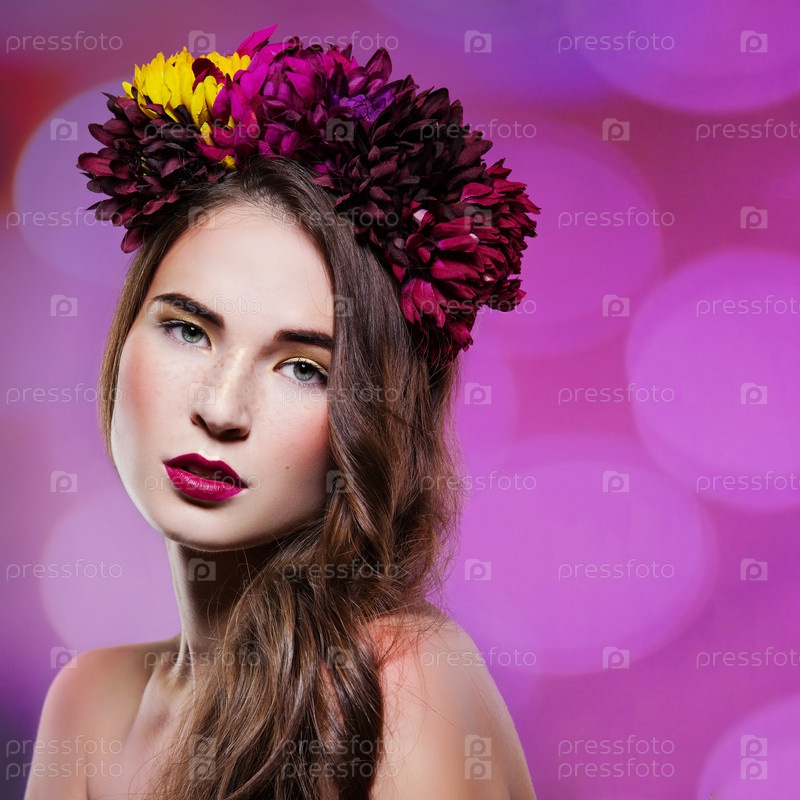 Красивая девушка с цветами на голове