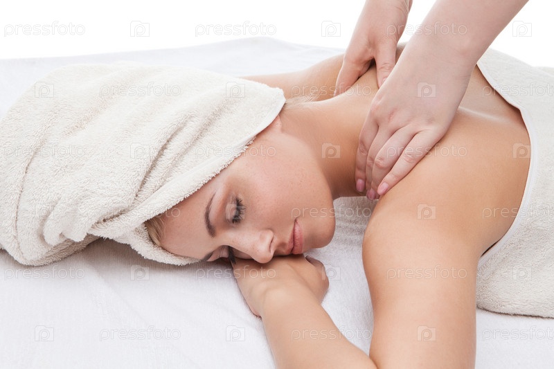 Красивая девушка получает массаж спины