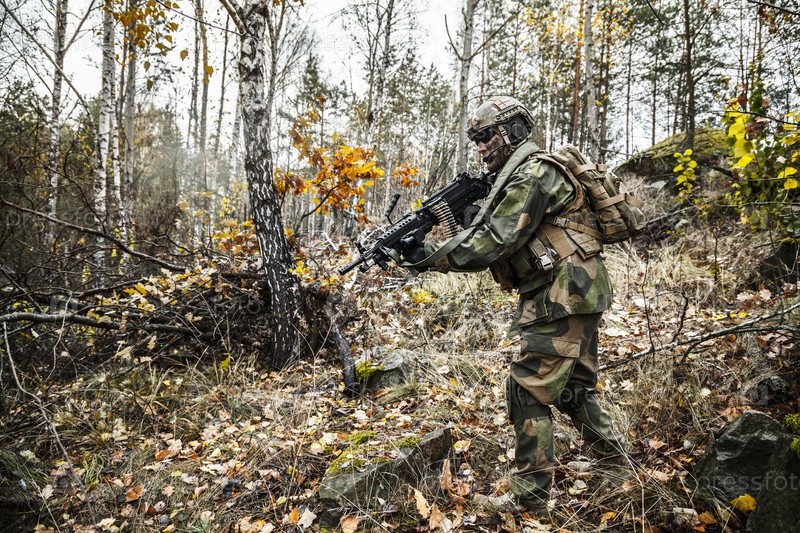 Норвежский солдат в лесу