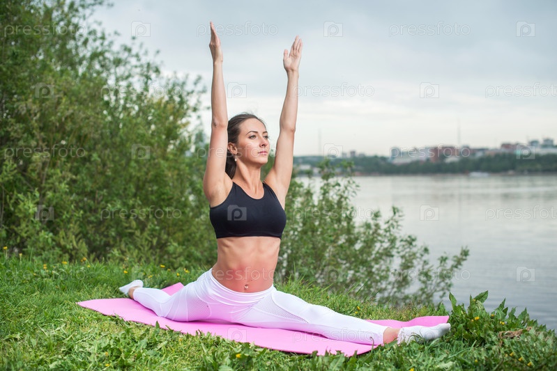 Девушка занимается йогой на природе