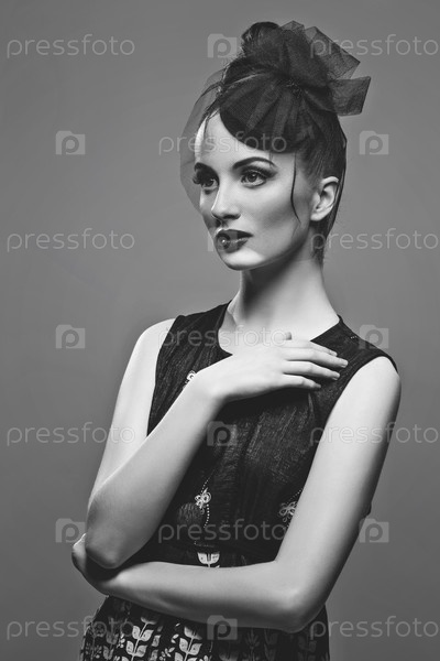 Красивая девушка с прической и ярким макияжем