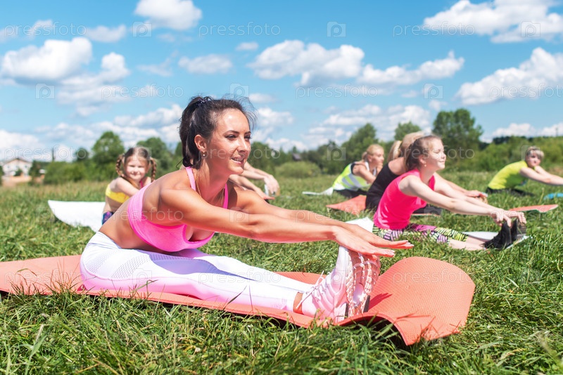 Женщины делают упражнения в парке