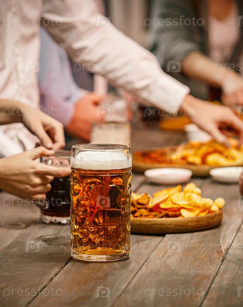 Друзья с пивом и закусками