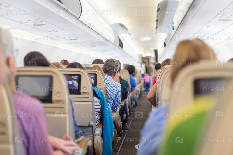 Интерьер самолета с пассажирами