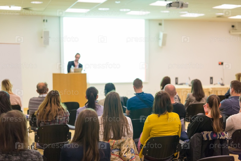 Аудитория в лекционном зале на научной конференции