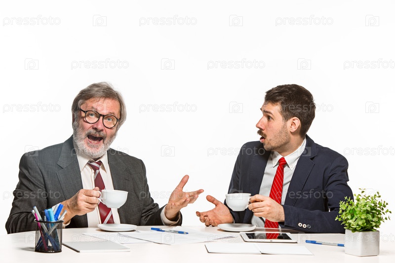 Двое эмоциональных коллег в офисе