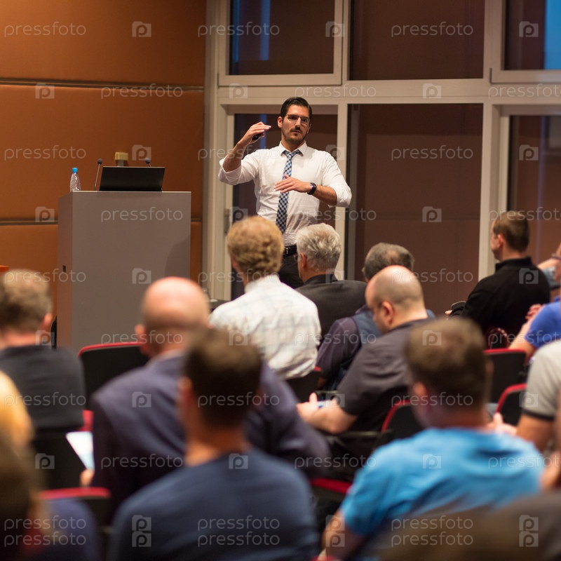 Бизнес-докладчик выступает в конференц-зале