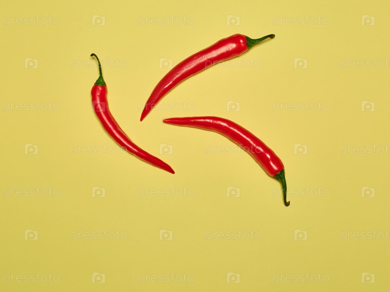 Горький перец чили и паприка на желтом фоне