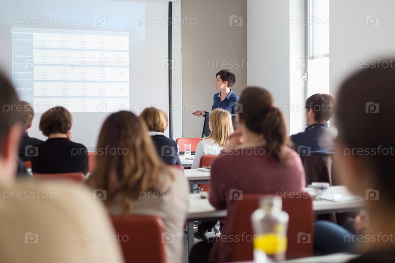 Женщина выступает в лекционном зале