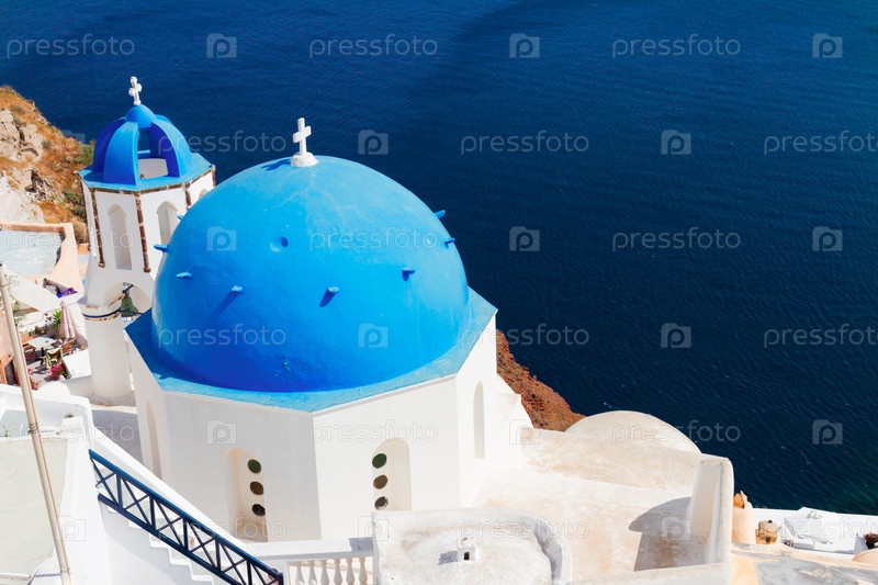 Традиционный голубой купол с видом на море, Санторини