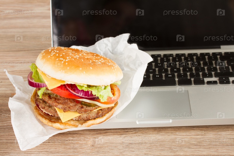 Обед на рабочем месте возле ноутбука
