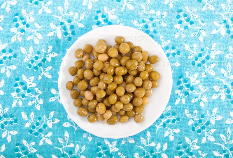 Вареный горох на голубой цветочной скатерти