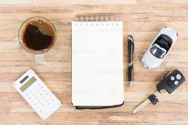 Игрушечный автомобиль с блокнотом, калькулятором и кофе