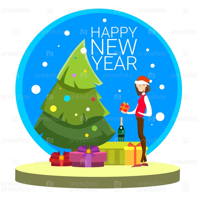 Деловая женщина держит подарочную коробку с Рождеством и Новым годом