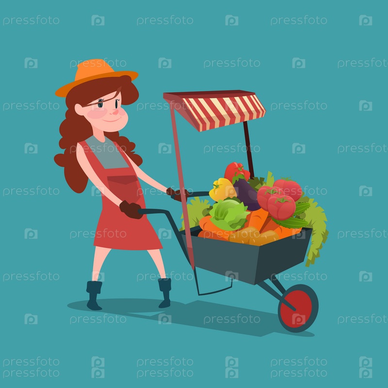 Девушка с тачкой овощей