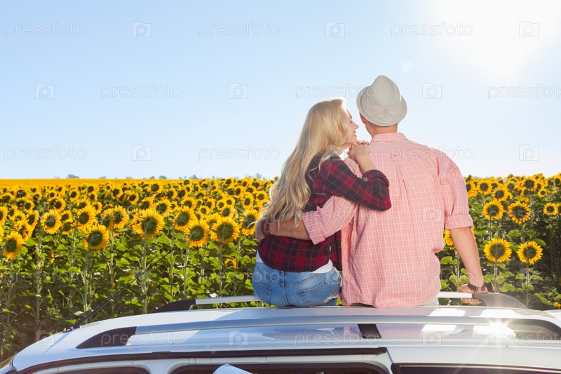 Пара перед полем подсолнухов