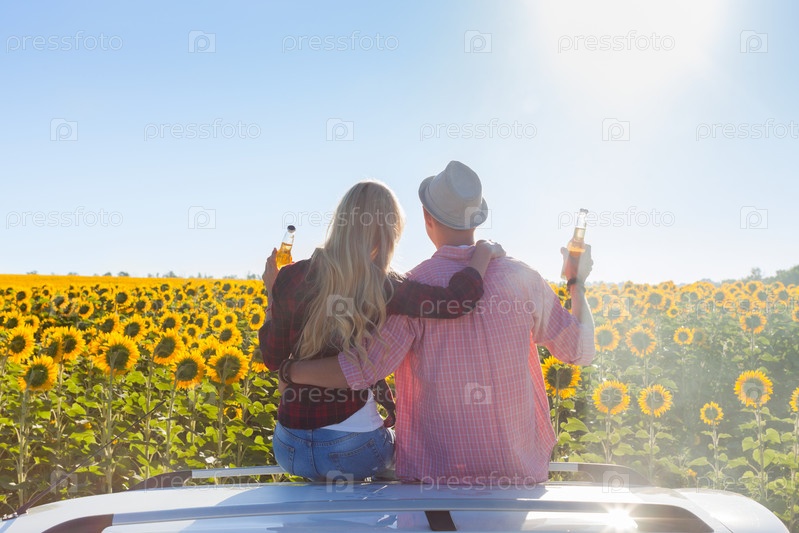 Пара в поле подсолнухов