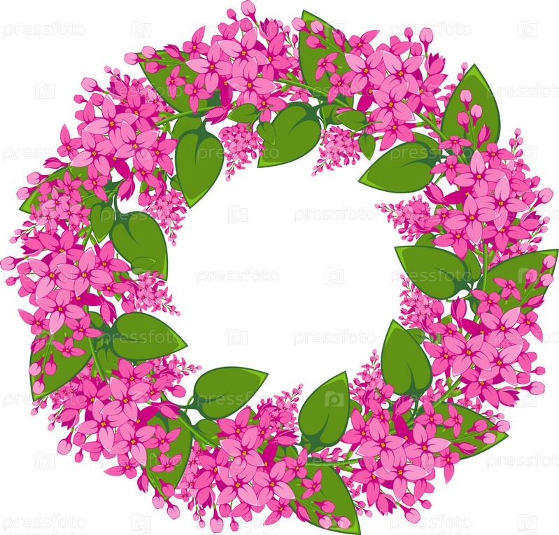 Венок из розовой сирени на белом фоне
