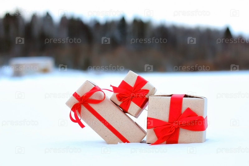 Подарочные коробки в снегу