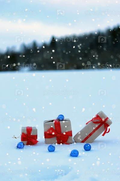 Подарочные коробки в снегу