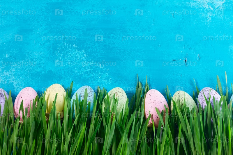 Пасхальные яйца на ярко-синем фоне