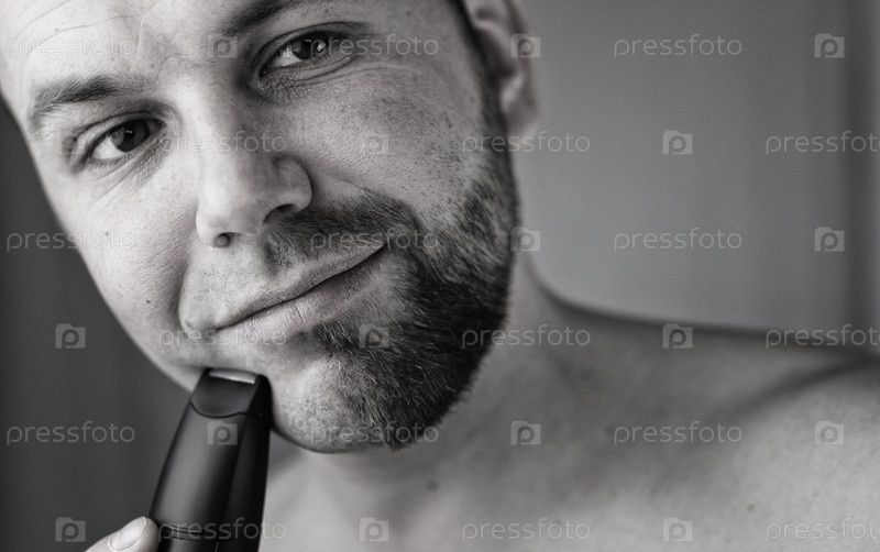 Бородатый мужчина бреется