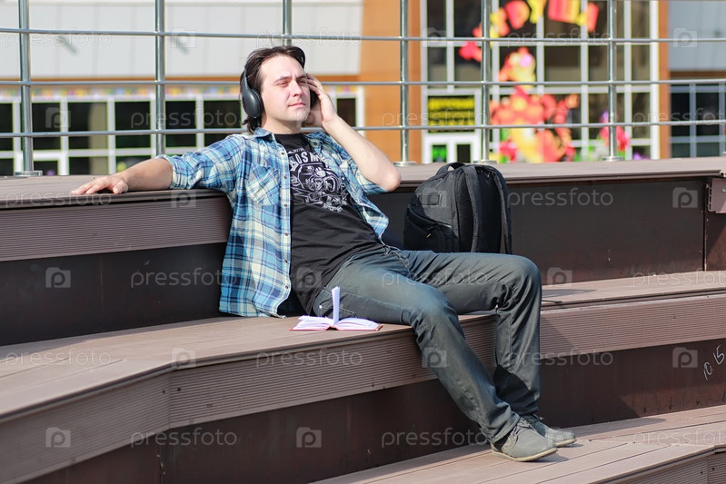 Мужчина слушает музыку в наушниках