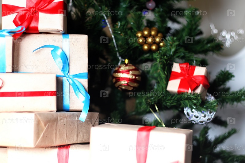 Подарок под деревом на Рождество