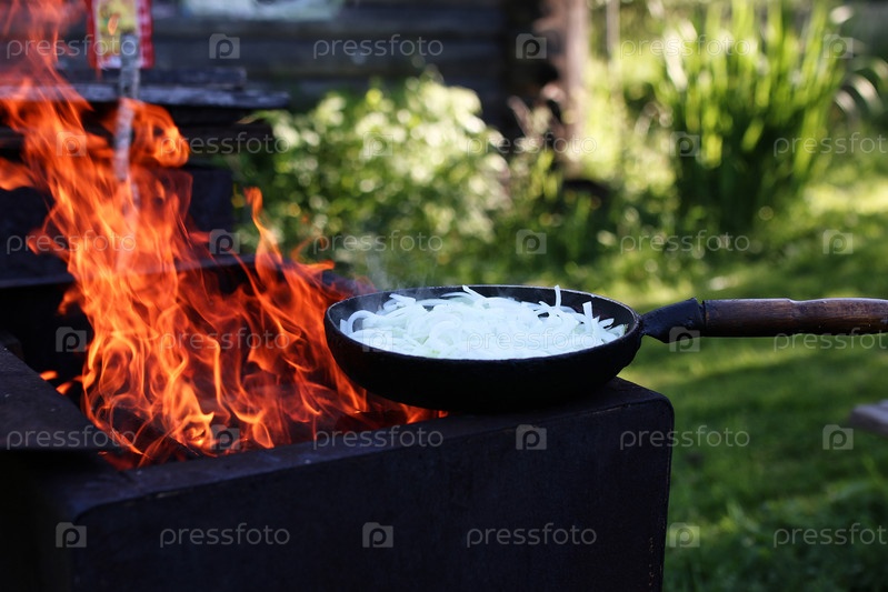 Лук жарится на открытом воздухе