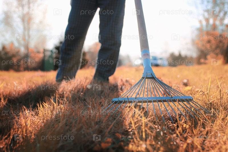 Человек с граблями осенью