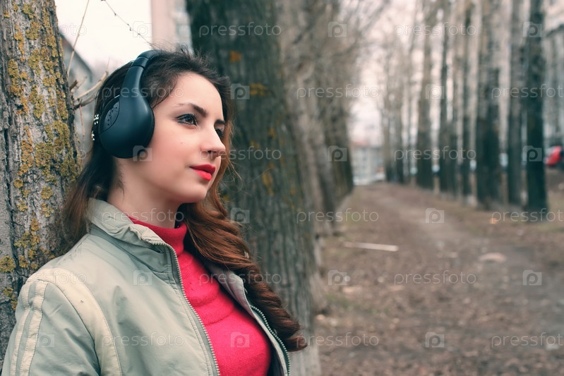 Девушка в парке с наушниками