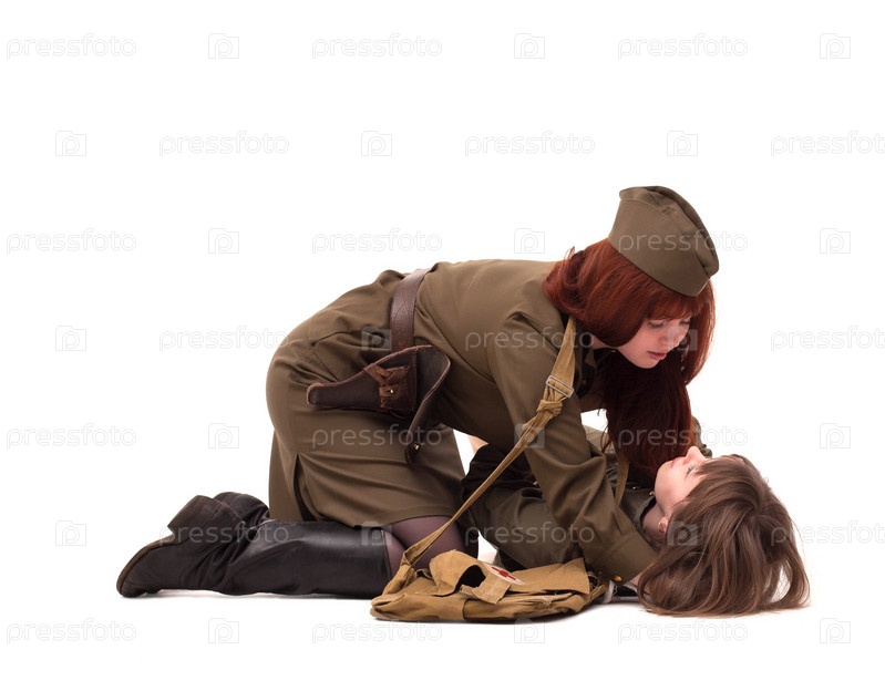 Молодые девушки, позирующие в военной одежде