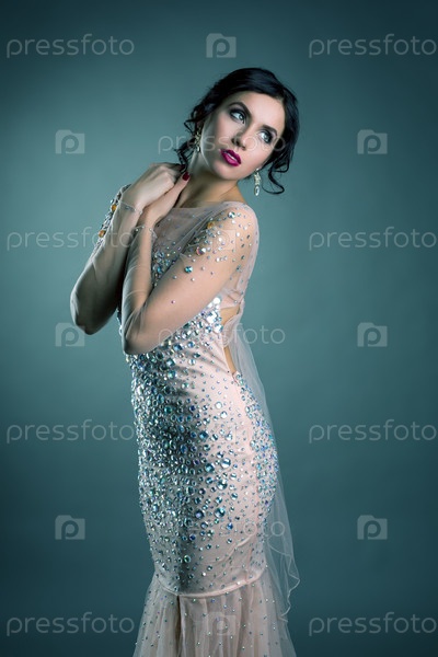 Красивая брюнетка в элегантном вечернем платье