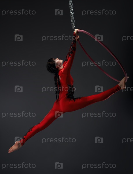 Девушка на художественной тренировке с обручем